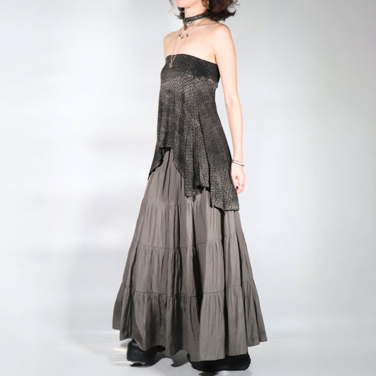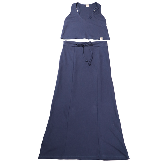 ワッフル ローウエスト切り替えロングスカート クロップドセットアップ