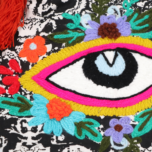 Eye flower 刺繍 タッセル付き ハンドメイド トートバッグ