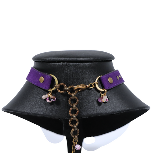 ハンドメイド ラムレザー 天然石 チョーカー/レザーネックレス Purple