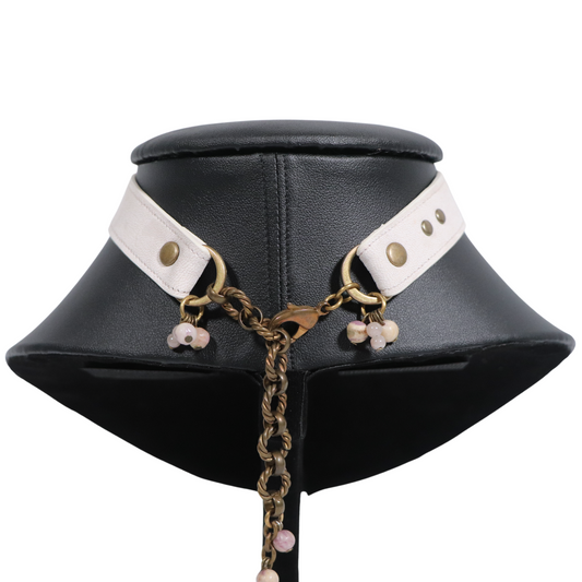 ハンドメイド ラムレザー 天然石 チョーカー/レザーネックレス Ash white