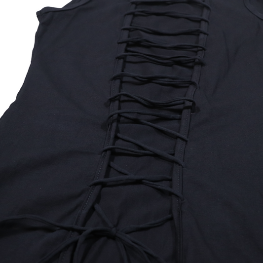 スーパーストレッチ Vネックタンク グリッドパターン/クロップ丈