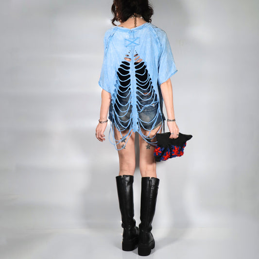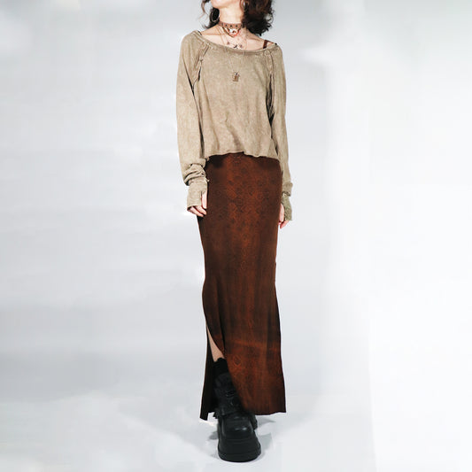 スパインカット アシッドウォッシュ クラッシュロングスリーブトップス(ユニセックス)